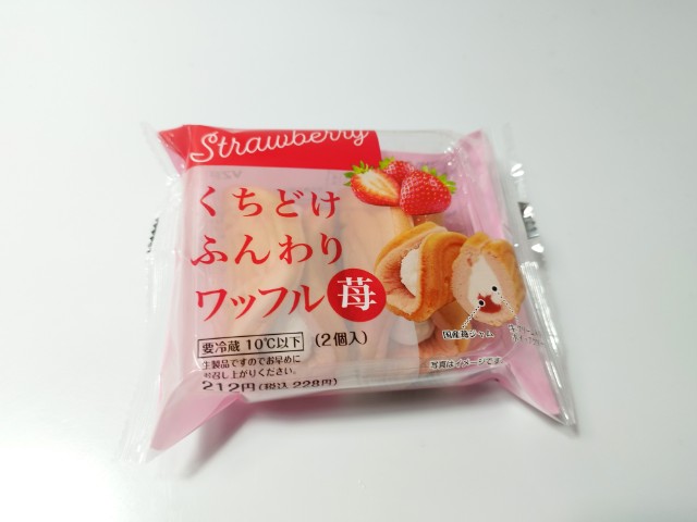 ファミリーマートの商品「くちどけふんわりワッフル苺」を食べてみました。