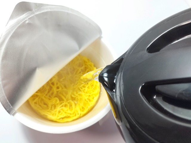 お湯を入れて、フタをして4分待ちます。