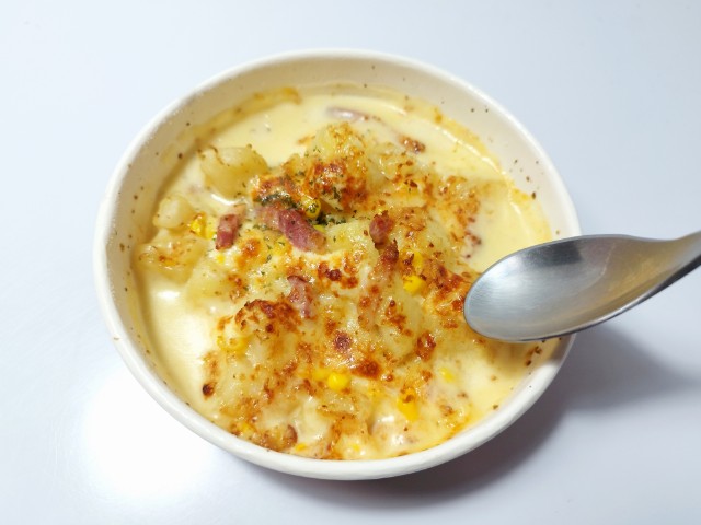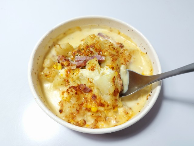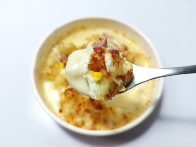 コーンとマヨネーズのポテトグラタンを美味しくいただきますっ!!