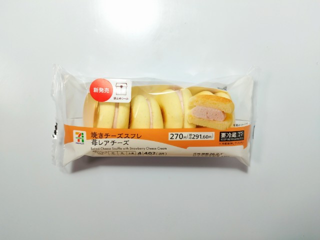 セブンイレブンの今週の新商品「7プレミアム 焼きチーズスフレ 苺レアチーズクリーム4個入」を食べてみました。