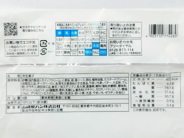 熱量:402kcal、たんぱく質:6.3g、脂質:19.1g、炭水化物:51.6g(糖質:50.7g、食物繊維:0.9g)、食塩相当量:0.4g