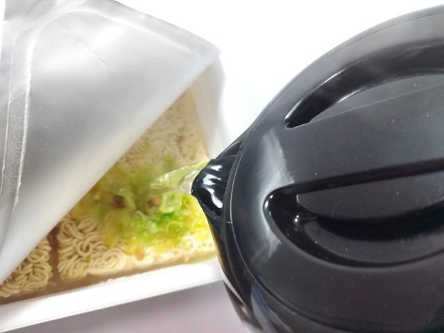 お湯を入れて、フタをして3分待ちます。
