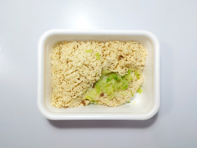 3分経ったので、お湯を捨ててフタを開けてみました。