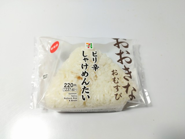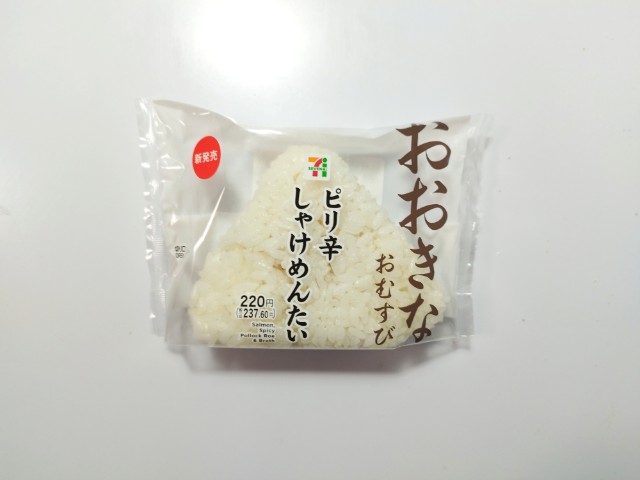 セブンイレブンの今週の新商品「おおきなおむすびピリ辛しゃけめんたい」を食べてみました。