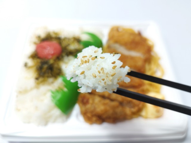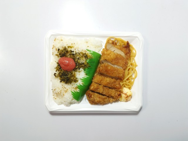 醤油・にんにくなどで濃い目に味付けした山賊焼をトッピングしたボリューム感のある山賊焼弁当です。ごはんには高菜と明太子をトッピングしたご飯進みの良い仕立てです。