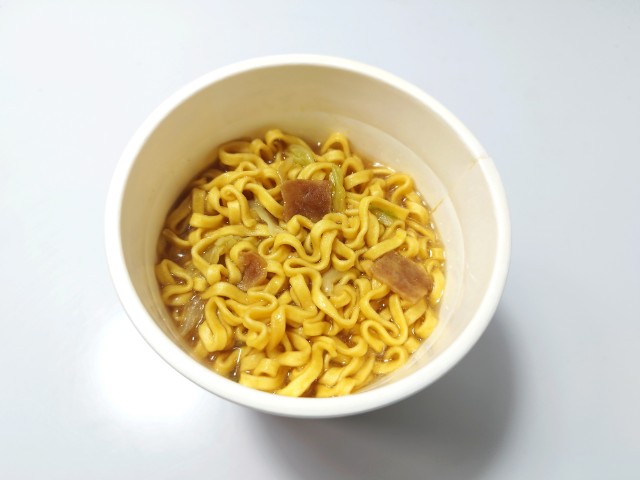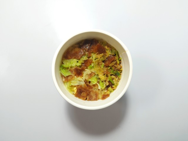 中華蕎麦とみ田監修の豚ラーメンです。中華蕎麦とみ田監修の豚ラーメンと言うと、ほぼ通年販売の商品でもあるチルド麺のとみ田監修デカ豚ラーメン(2025年5月20日発売)の印象が強いと思いますが、今回はカップ麺にて発売されています。そんな豚ラーメンですが、スープは豚の旨味と醤油のキレ、にんにくの味わいがあって、間違いのない美味しさです。麺はワシワシとした食感とにんにくの風味があって、濃厚なスープにも負けていません。具材にはキャベツやチャーシュー、背脂加工品、ローストガーリックが入っていて、それぞれの味や食感を楽しめます。内容量は普通のカップ麺サイズで、小腹が空いた時やおにぎりやパンと合わせて1食分にするのにもオススメです。ぜひ豚ラーメンを食べてみてください。