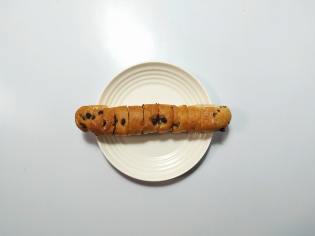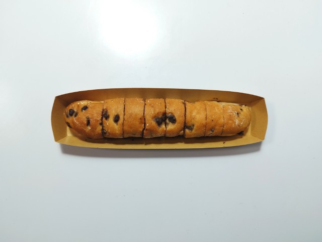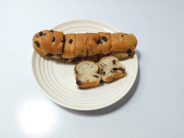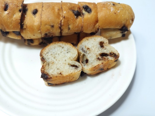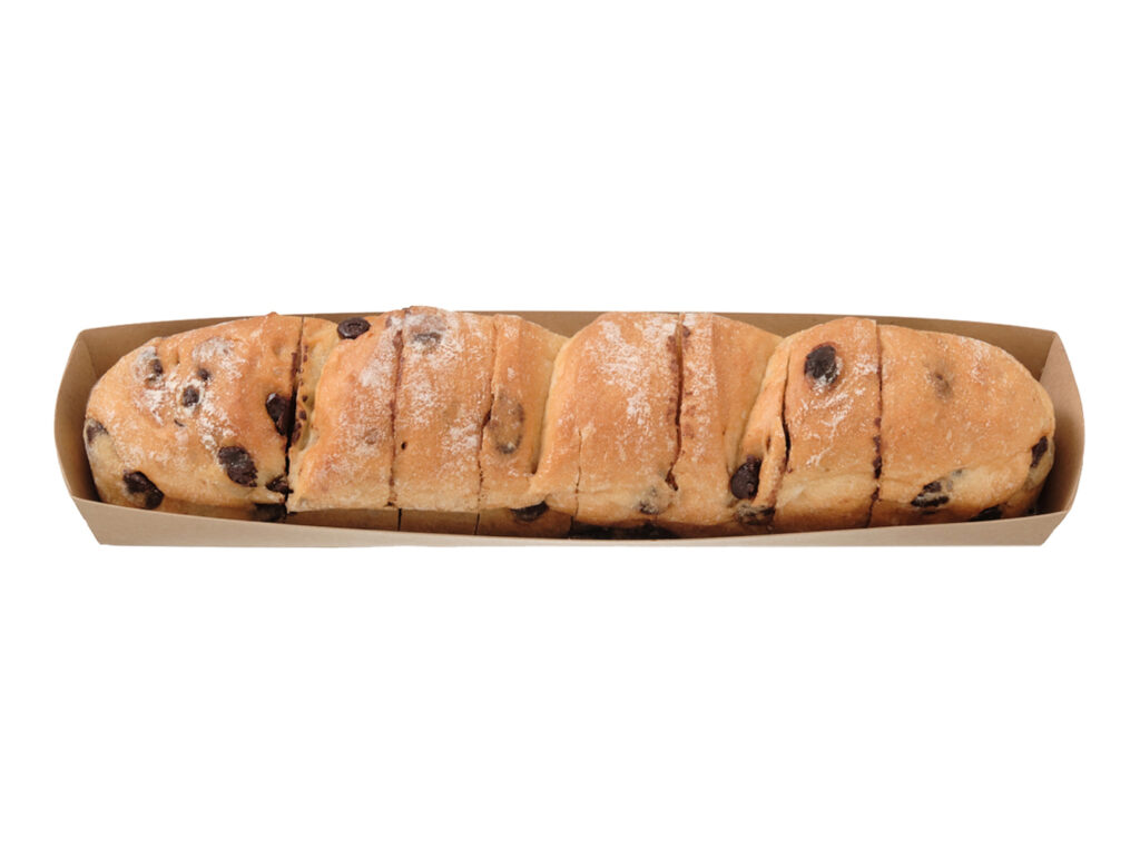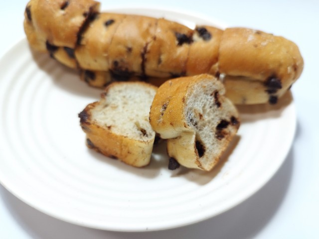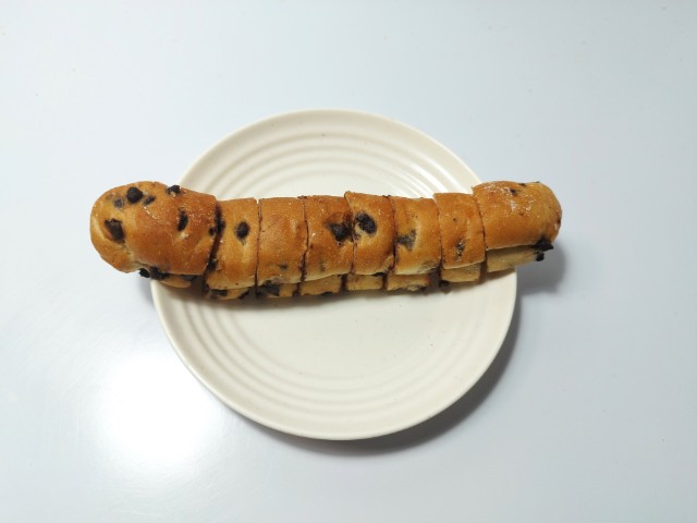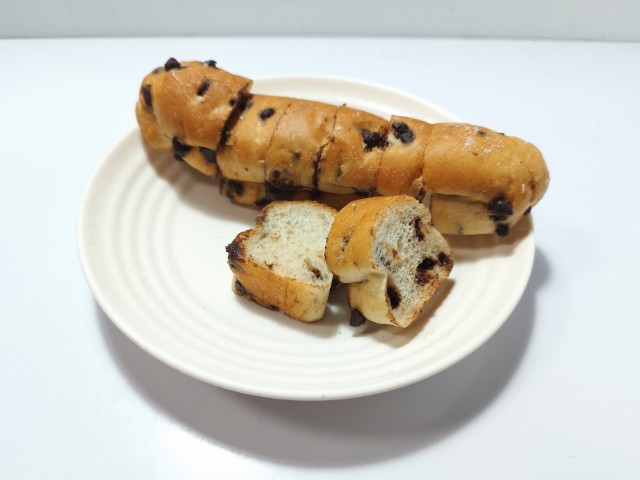 チョコチップを混ぜ込んだフランスパン生地を香ばしく焼き上げ、8切にカットしました。
