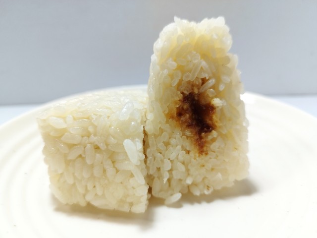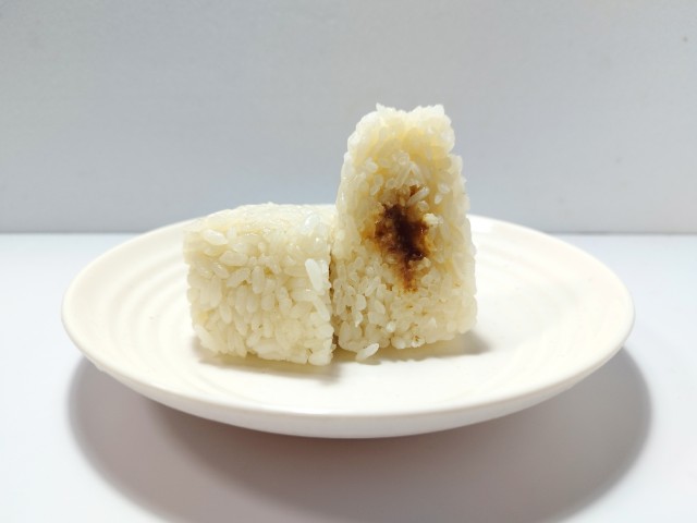 おかかとわさびを使ったおむすびです。おかかとわさびの組み合わせに興味をそそられて買ってみました。そんなおむすびですが、ご飯はだし飯になっていて、だしの風味とほのかな塩味があって、これだけでも美味しく食べ進められます。中具のおかかわさび和えはおかかの旨味とわさびの風味があって、ご飯ともよく合います。個人的には予想以上にわさびのツーンとした辛味があって、少し面を食らった感じでしたが、だし飯とおかかわさびの相性が良いので、最後のひと口まで美味しく食べられます。大きさは普通のおむすびサイズで、小腹が空いた時や主食にあと一品追加したい時にピッタリです。ぜひおかかわさびのだしむすびを食べてみてください。