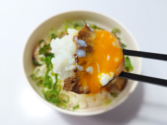 これぞ豚っ!です。以前の商品はほぼ通年販売の商品だったので、店頭で見かけたり、食べた事がある方も多いと思います。今回、新商品ではありますが、正確にはリニューアルというのが正しいのかもしれません。ちなみに以前は長方形の豚バラ肉2枚でしたが、今回は丸形の1枚肉になっていて、パッケージにも大判の文字が押印されています。今回の形状のイメージとしては、とみ田監修デカ豚ラーメン(2025年5月20日発売)で使われているデカ旨チャーシューに近いと思います。また、セブンイレブンプレミアム公式では今回の商品へと更新されているので、今後はほぼ全国販売へと切り替わっていくと思われます。そんなこれぞ豚っですが、しっとりと柔らかい肉質とジューシーな脂、醤油だれの味わいで、美味しいのひと言です。今回はチャーシュー丼にしましたが、前述のとみ田監修デカ豚ラーメンにのせてチャーシューマシマシとして食べるのもアリだと思います。それぞれの価格ですが、温泉たまごは98円(税込105.84円)、ひとめぼれは198円(税込213.84円)、刻み青ねぎは130円(税込140.40円)となっています。もちろん、もっと安い食材や良い材料をスーパーや専門店などで見つければあると思いますが、あくまでセブンイレブンの食材のみで作っているので、見た目や内容はご理解いただけると助かります。内容量は1食分にちょうどよく、軽く済ませたい時やあと少し食べたい時にもピッタリです。ぜひこれぞ豚っ!を食べてみてください。