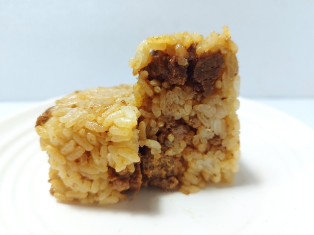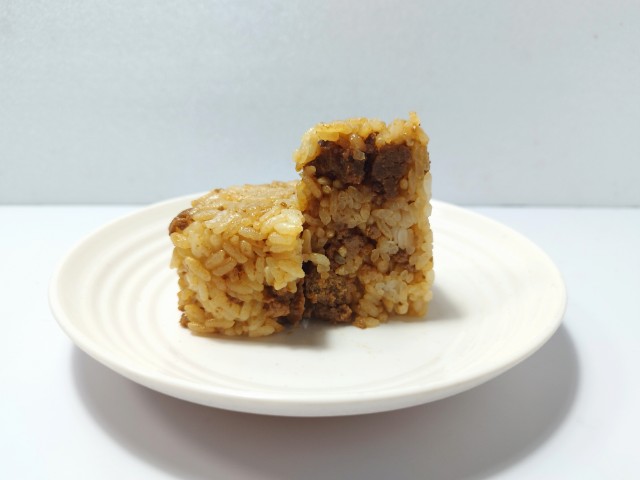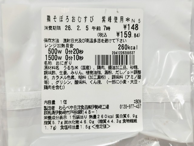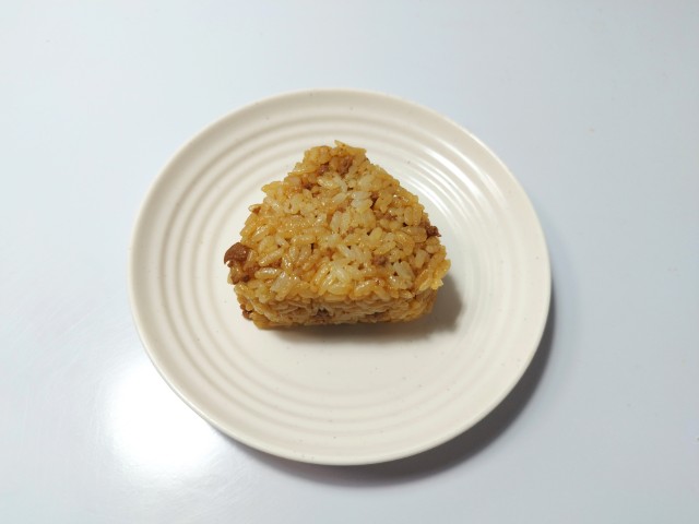 鶏そぼろを混ぜ込んだおむすびです。以前に鶏そぼろおむすび(2025年9月9日発売)がありましたが、こちらは紫峰醤油という茨城県土浦市柴沼醤油醸造が製造した板前仕立ての醤油が使われています。そんな鶏そぼろおむすびですが、ご飯には紫峰醤油で味付けされた鶏そぼろが混ぜ込まれていて、鶏の旨味醤油の風味があって、食べ出すと止まらなくなる美味しさです。また、鶏そぼろの大きさもポイントで、ゴロっとした食感ジューシーな味わいを楽しむ事が出来ます。大きさは普通のおむすびサイズで、小腹が空いた時主食にあと一品追加したい時にピッタリです。ぜひ鶏そぼろおむすびを食べてみてください。