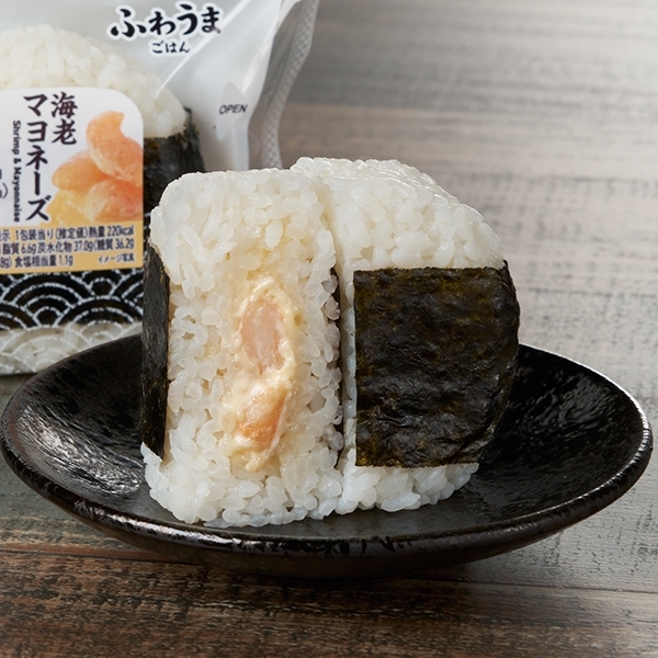 えびの旨みと、魚醤や甲殻類の旨みでコクのある味わいのマヨネーズを合わせた、ジューシーなおむすびです。※静岡県の一部では取り扱いがございません。