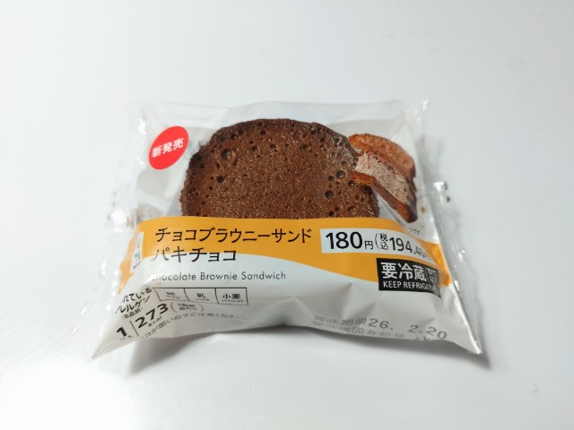 セブンイレブンの今週の新商品「7プレミアム チョコブラウニーサンド パキチョコ」を食べてみました。