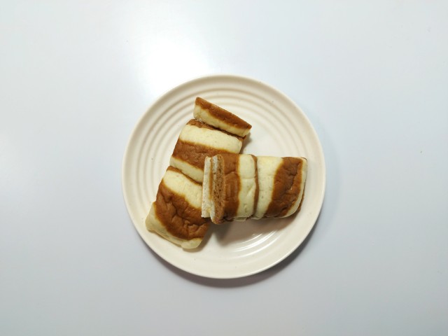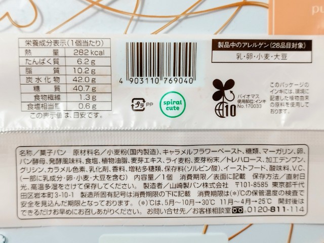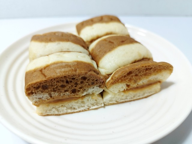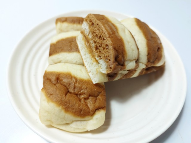 キャラメルクリームサンドです。ファミリーマートでは2月10日より2月22日の“ねこの日”に合わせて「ファミリ~にゃ~ト大作戦 !」今年開催していて、今回の商品も対象商品の一つになっています。そんなキャラメルクリームサンドですが、ミルク風味の生地キャラメル風味の生地を使ったしましま模様の生地しっとりとした食感ミルクの風味キャラメルの風味があって、それぞれの味の変化を楽しみながら食べ進められます。キャラメルクリームなめらかな食感キャラメルの味わいしっかりとした甘味があって、生地との相性抜群です。甘味を楽しめる菓子パンといった印象ですが、くちどけの良さもあって、甘ったるさが残らないのはポイントが高いと思います。大きさは普通の菓子パンサイズで、おやつ小腹が空いた時にピッタリです。ぜひしっぽみたいなキャラメルクリームサンドを食べてみてください。