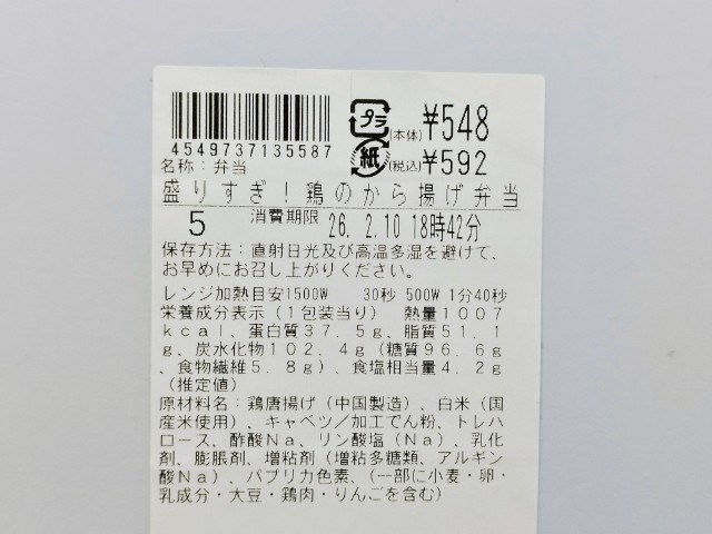 ローソンの今週の新商品「まちかど厨房 盛りすぎ!鶏のから揚げ弁当」を食べてみました。