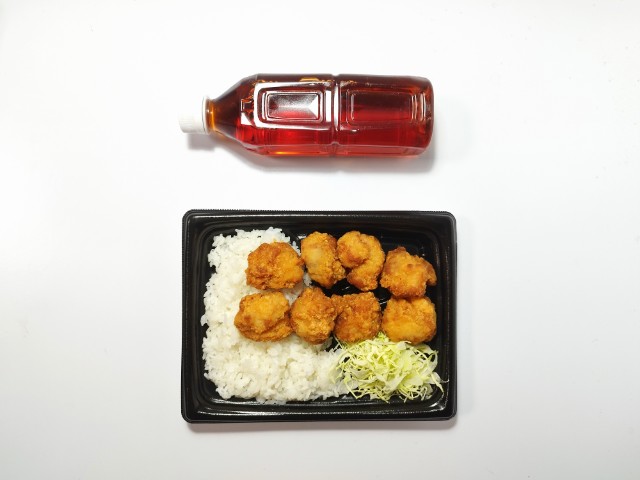 から揚げを3個増量した、ボリュームたっぷりで食べ応えのあるお弁当。