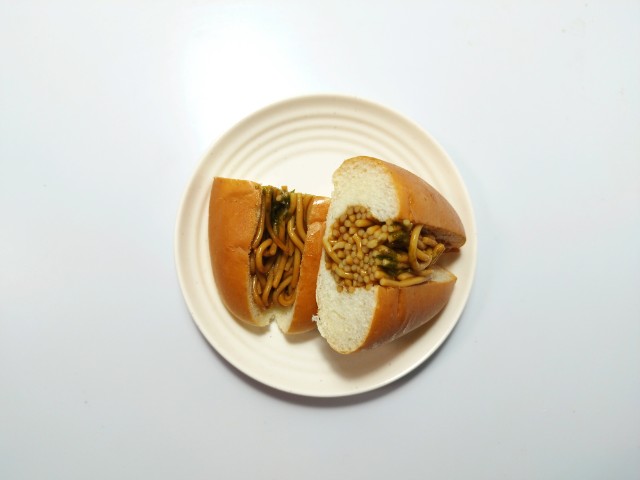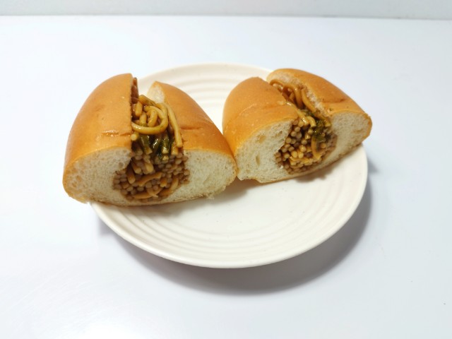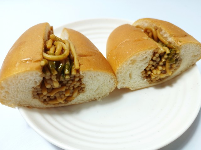 間にはやきそばがぎっしりと入っています。