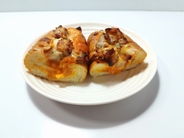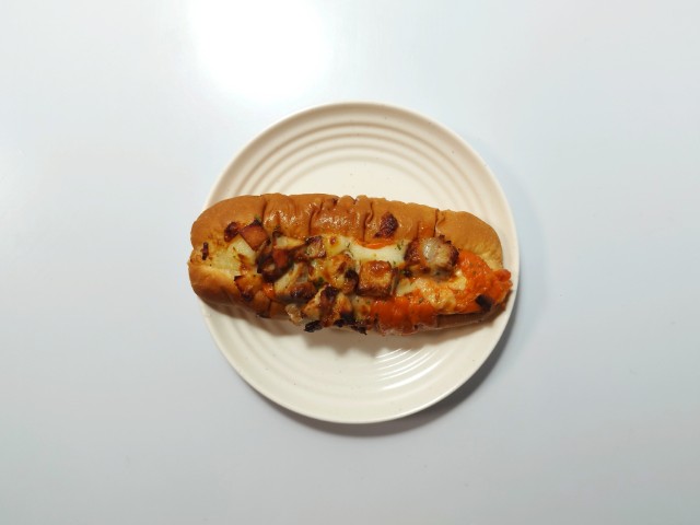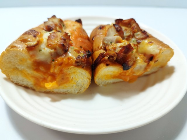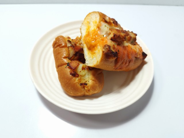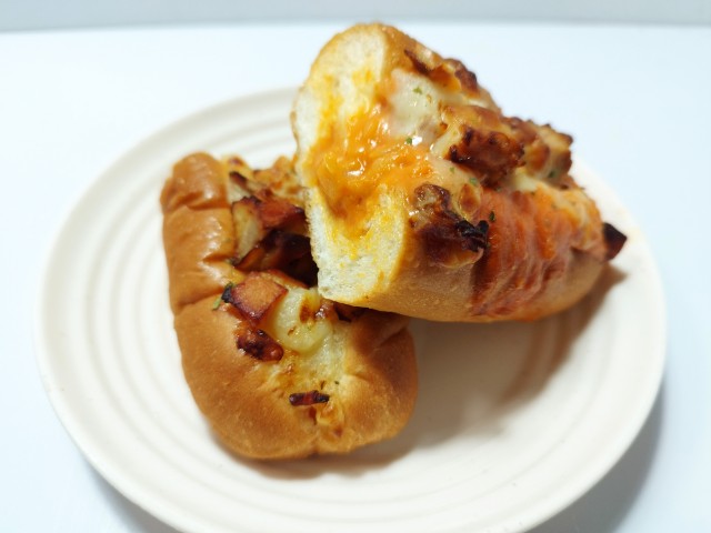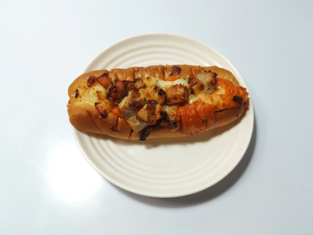 ローストチキンマッシュポテトチーズがのったロールパンです。商品名と見た目に惹かれて買ってみました。そんなごろっとチキンのトマトクリームソースですが、パン生地は温めたのもありますが、しっとりとした食感小麦の風味で、安定の美味しさです。中にはトマトクリームソースが入っていて、トマトのほのかな酸味クリームのなめらかな味わいがあって、生地とのバランスも良いです。トッピングのローストチキン鶏の旨味しっとりと柔らかい肉質マッシュポテトじゃがいものクリーミーな味わいチーズほどよい塩味香ばしさがあって、美味しいのひと言です。特にローストチキンごろっとした大きさで、食べ応えもしっかりとあります。大きさは普通のコッペパンくらいで、小腹が空いた時主食にあと一品追加したい時にピッタリです。ぜひジャーマンポテトロールを食べてみてください。ごろっとチキンのトマトクリームソースを食べてみてください。