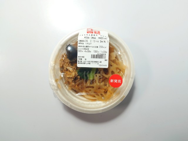 熱量:256kcal、たんぱく質:9.8g、脂質:9.1g、炭水化物:36.5g(糖質:30.9g、食物繊維:5.6g)、食塩相当量:4.9g