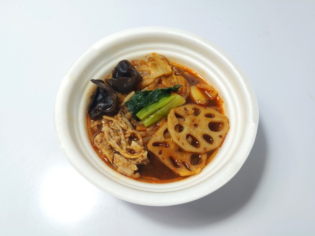 つるもち食感の太麺春雨を使用した麻辣湯です。花椒の香り、唐辛子の辛味が効いたスープで野菜も取れる満足感ある仕立てです。