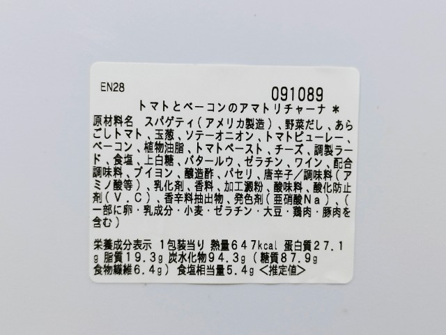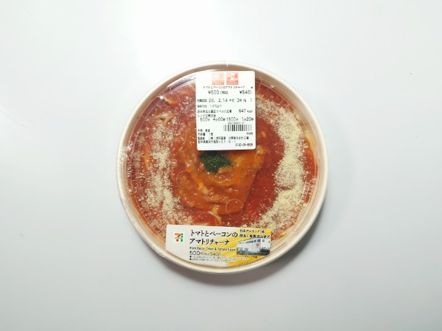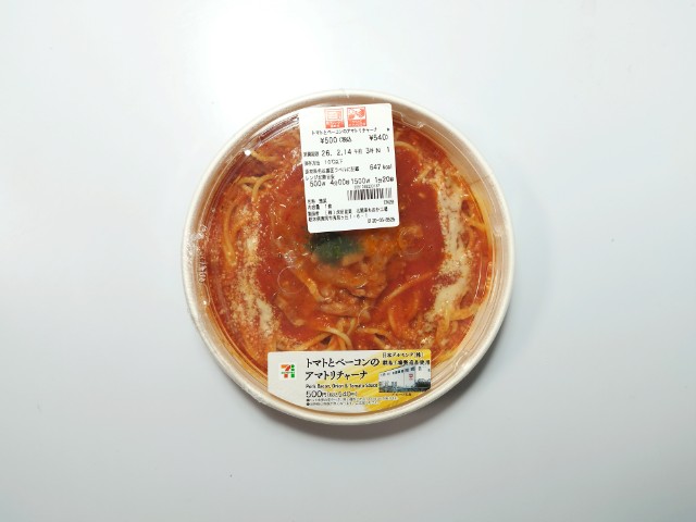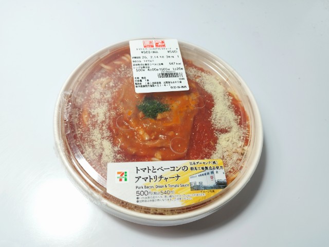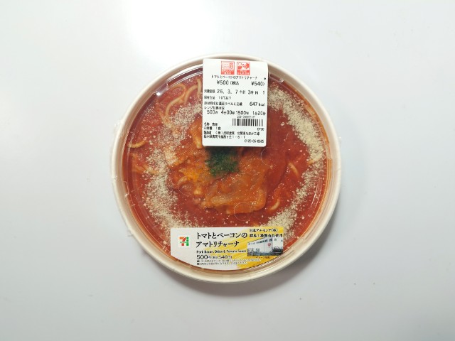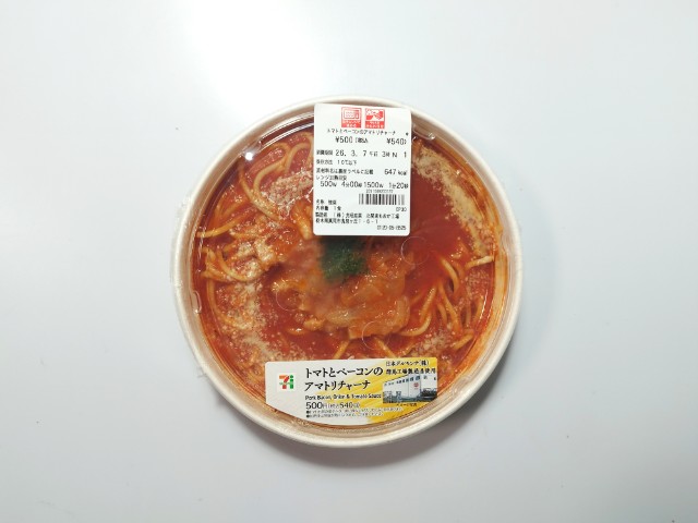 セブンイレブンの商品「トマトとベーコンのアマトリチャーナ」を食べてみました。