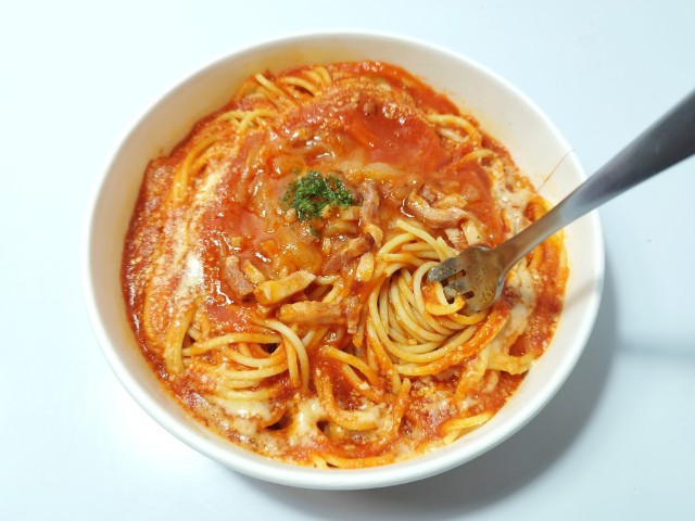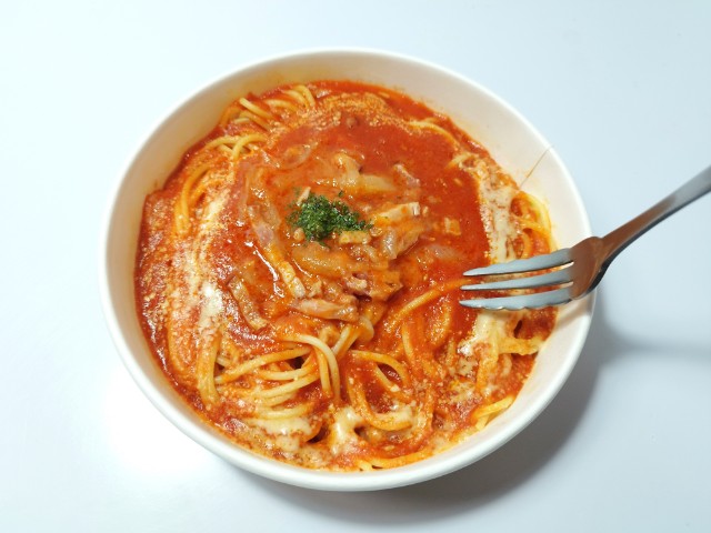 トマトの酸味、甘味とベーコンの旨みが詰まったパスタです。