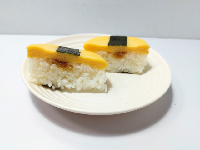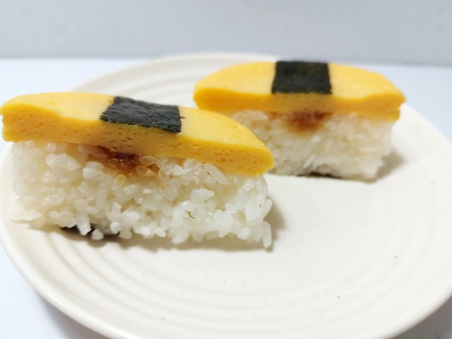 玉子焼きと酢飯の間には醤油タレが入っています。