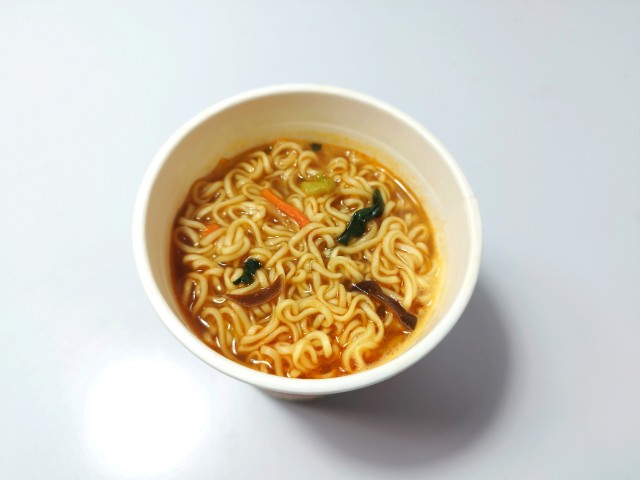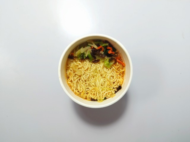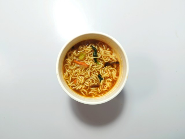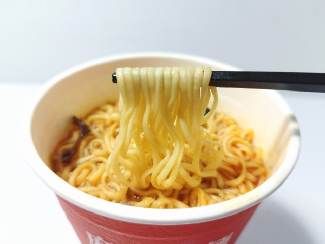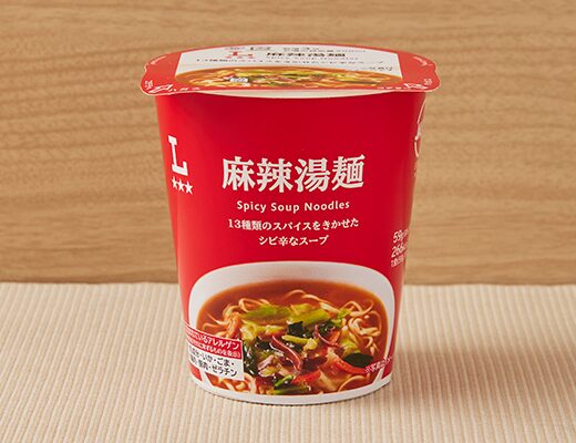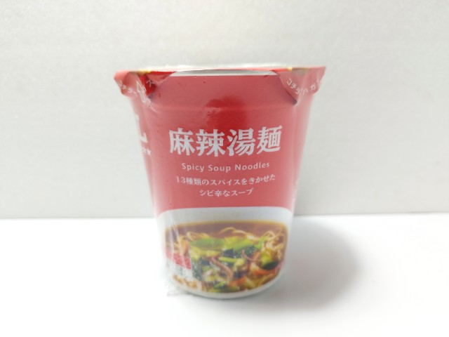 麻辣湯麺です。シンプルな商品名にそそられて、思わず買ってしまいました。そんなカップ麺ですが、スープ豚の旨味唐辛子の辛味花椒の痺れがあって、クセになってしまう美味しさです。もちっとした食感小麦の風味で、スープとのバランスも良いです。具材にはキャベツチンゲン菜きくらげ人参が入っていて、それぞれの味や食感を楽しめます。辛味はもちろんありますが、それ以上にスパイスの風味がしっかりと感じられる麻辣湯麺といった感じで、最後のひと口まで飽きることなく食べられます。内容量は普通のカップ麺サイズで、小腹が空いた時おにぎりパンと合わせて1食分にするのにもオススメです。ぜひ麻辣湯麺を食べてみてください。