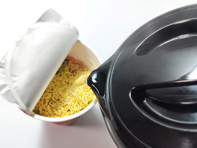 お湯を入れて、フタをして3分待ちます。