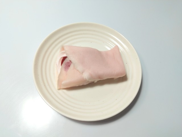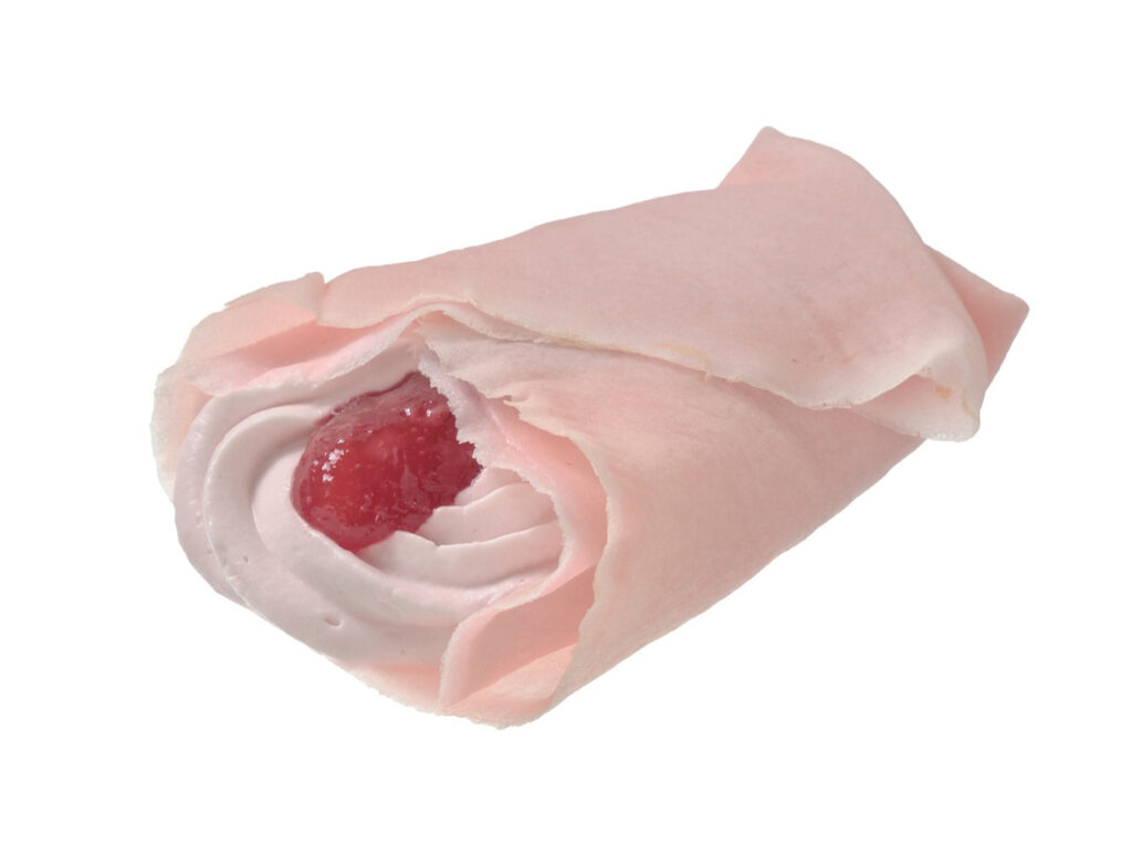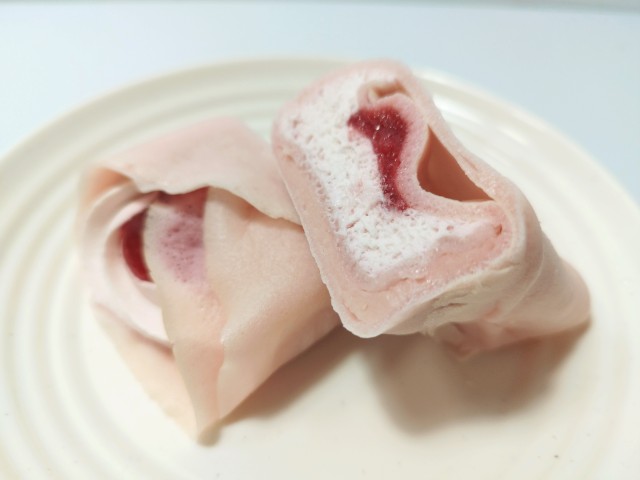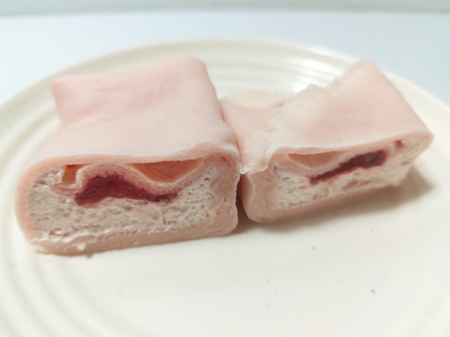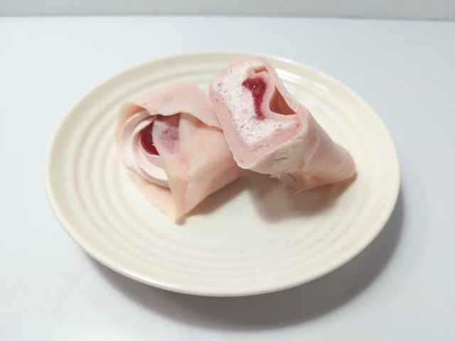 ピンク色のクレープ生地になっています。