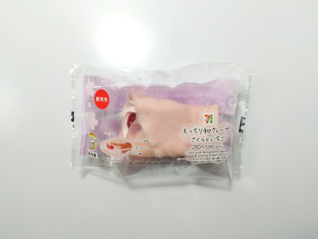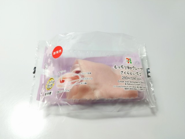 セブンイレブンの今週の新商品「もっちり和クレープ さくらといちご」を食べてみました。