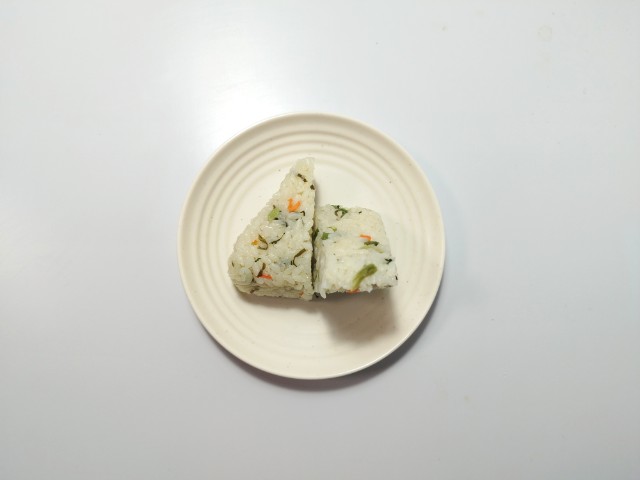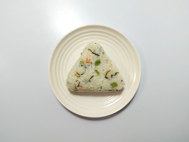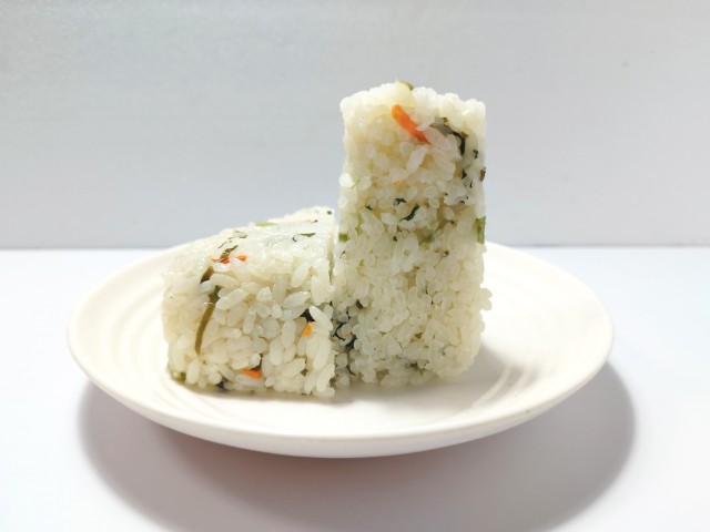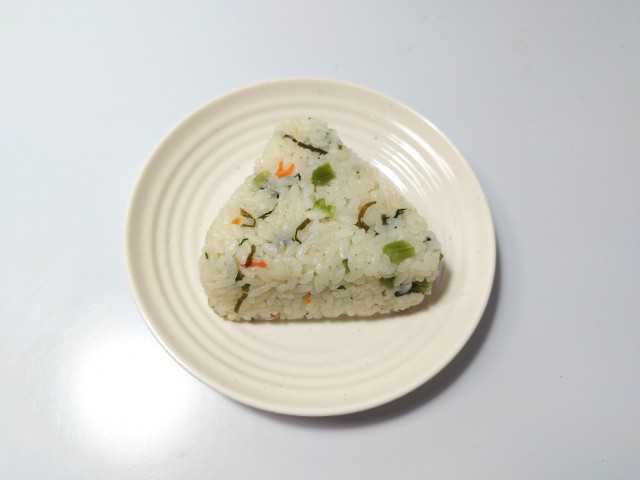 昆布のだしで炊いたご飯に、食感の良い野沢菜,昆布,人参を混ぜ込んだおむすびです。