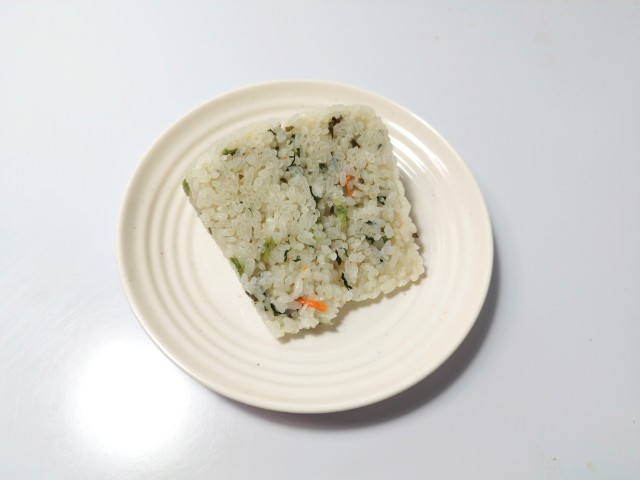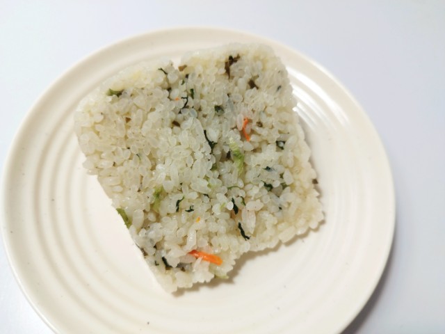 野沢菜と昆布を使ったおむすびです。野沢菜と昆布といったご飯に合う食材同士の組み合わせに興味をそそられて買ってみました。そんなおむすびですが、野沢菜と昆布が混ぜ込まれただしご飯は、だしの旨味と野沢菜の塩味、昆布の味わいで、間違いのない美味しさです。見た目はシンプルですが、旨味がしっかりと詰まったおむすびといった感じで、最後のひと口まで美味しく食べられます。大きさは普通のおむすびよりもやや大きめなので、このおむすび1個でお腹も軽く満たされると思います。ぜひ野沢菜こんぶのおおきなおむすびを食べてみてください。
