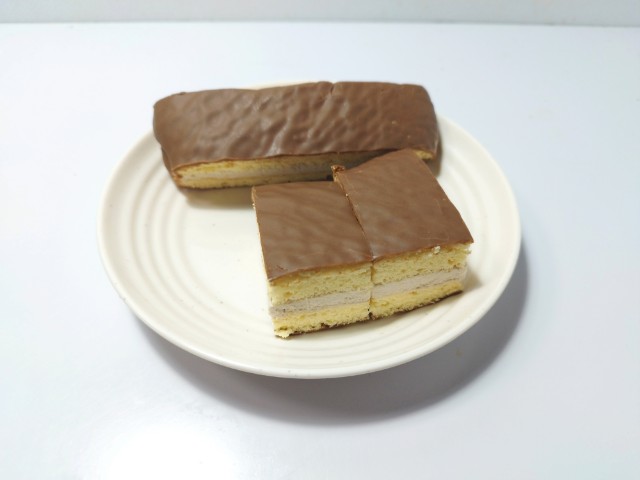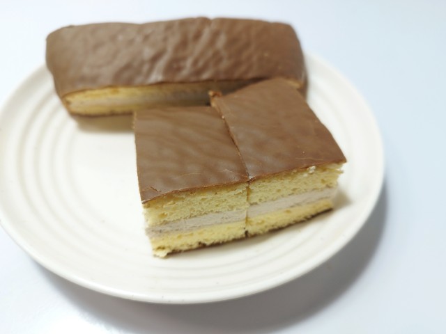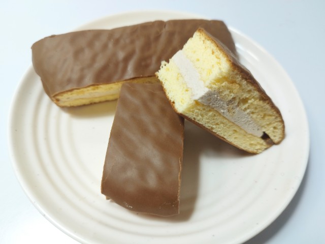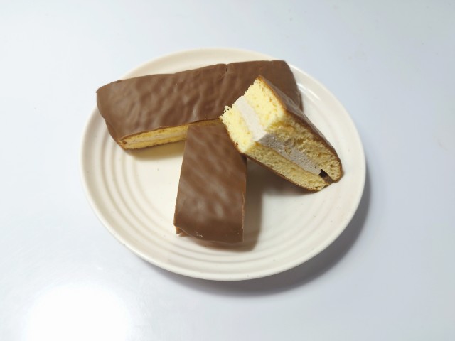 コーヒークリームを挟んだコーヒーチョコサンドです。以前に同様の商品として、7プレミアム ちょこさんど 2本入(2025年11月11日発売)がありましたが、今回はコーヒーチョコになっています。そんな珈琲チョコサンドですが、生地はふんわりとした食感とほどよい甘味、くちどけの良さで、間違いのない美味しさです。コーヒーチョココーティングはパリパリとした食感はないものの、コーヒーの味わいとチョコの甘味があって、味のアクセントになっています。コーヒークリームはなめらかな食感とコーヒーの風味で、スポンジ生地とのバランスも良いです。全体的には甘味のあるサンドですが、甘ったるさが残らないので、甘いのがちょっと苦手な方にも食べやすいと思います。2本入ですが、1本はふた口サイズくらいなので、一人でも普通に食べ切れます。ぜひ珈琲チョコサンドを食べてみてください。