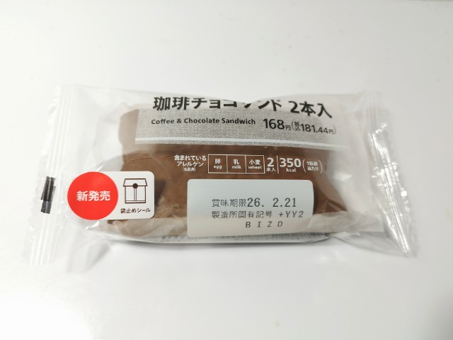 セブンイレブンの今週の新商品「7プレミアム 珈琲チョコサンド 2本入」を食べてみました。