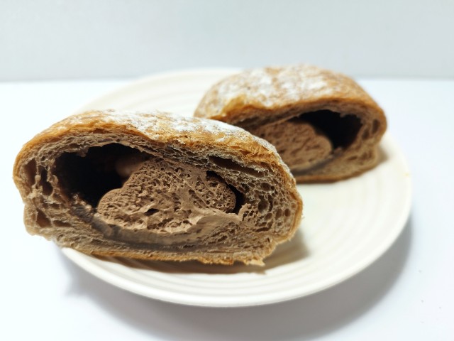 チョコクリームとチョコホイップが入ったデニッシュです。以前に同じ商品名のダブルチョコデニッシュ(2025年4月8日発売)がありましたが、見た目や価格、生地や使われているチョコの種類が明らかに異なるので、別物として紹介しています。そんなダブルチョコデニッシュですが、生地はふんわりとした食感とくちどけの良さ、チョコの風味で、安定の美味しさです。中にはチョコクリームとチョコホイップが入っていて、チョコクリームはねっとりとした食感とチョコの甘味、チョコホイップはなめらかな食感とチョコの味わいで、生地とのバランスも良いです。大きさは普通の菓子パンサイズで、おやつや小腹が空いた時にピッタリです。ぜひダブルチョコデニッシュを食べてみてください。