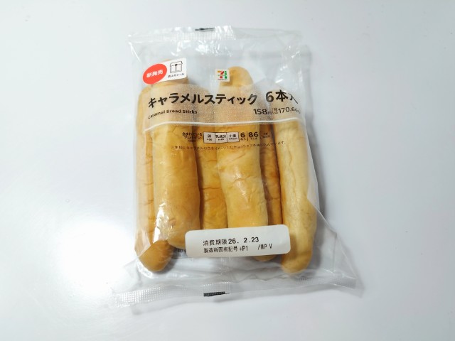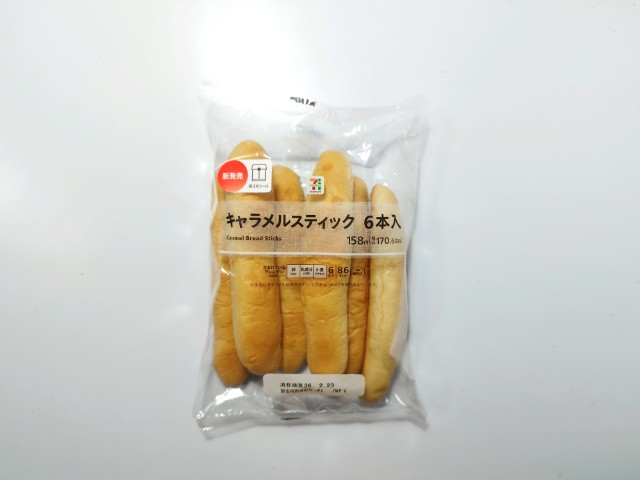 セブンイレブンの今週の新商品「7P キャラメルスティック6本入」を食べてみました。