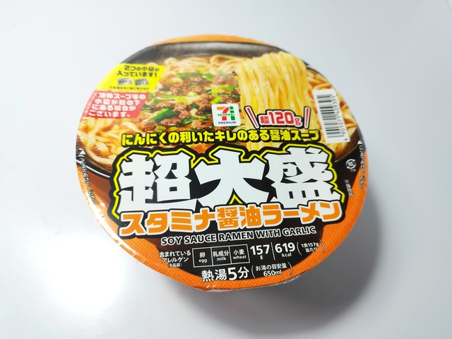 セブンイレブンの今週の新商品「7プレミアム 超大盛 スタミナ醤油ラーメン」を食べてみました。