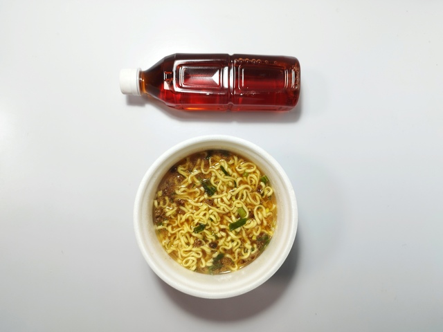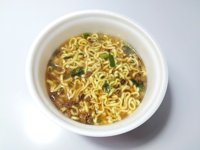 超大盛のスタミナ醤油ラーメンです。以前に7プレミアム 超大盛お好みソース焼そば(2025年12月2日発売)や7プレミアム 超大盛 辛タンメン(2025年7月22日発売)、7プレミアム 超大盛 わかめラーメン しょうゆ味(2025年7月22日発売)がありましたが、今回はスタミナ醤油ラーメンになっています。そんなスタミナ醤油ラーメンですが、スープは豚の旨味と醤油の風味とにんにくの味わいで、ハマってしまう美味しさです。麺はツルっとした食感と歯切れの良さで、スープとの相性抜群です。具材には肉そぼろやニラ、ねぎなどが入っていて、それぞれの味や食感を楽しめます。にんにくは香りに比べてがっつりとした感じではありませんが、それでもしっかりと残るので、食べた後に人に会う場合はマスク着用をオススメします。内容量はパッケージの記載通りの麺120gの超大盛なので、ガッツリ食べたい方にはちょうど良いと思います。ぜひ超大盛のスタミナ醤油ラーメンを食べてみてください。