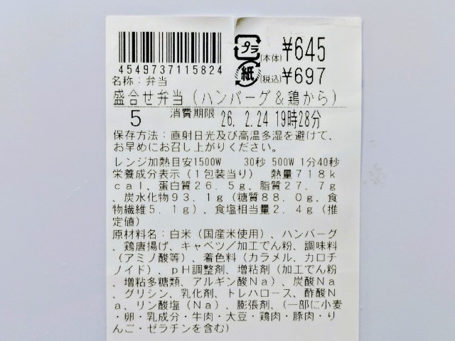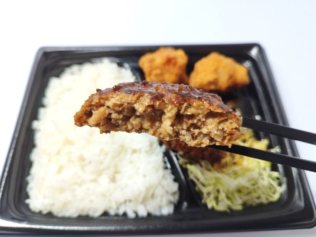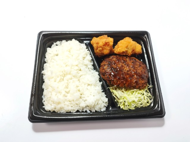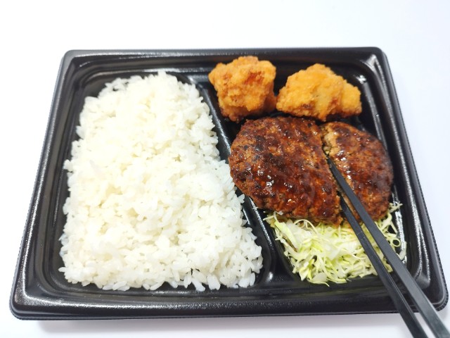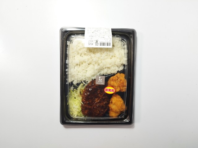 ローソンの今週の新商品「まちかど厨房 盛合せ弁当(ハンバーグ&鶏から)」を食べてみました。