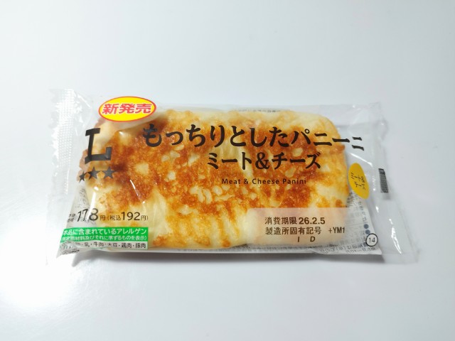 ローソンの商品「もっちりとしたパニーニ ミート&チーズ」を食べてみました。