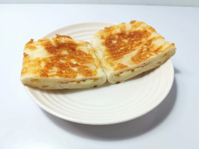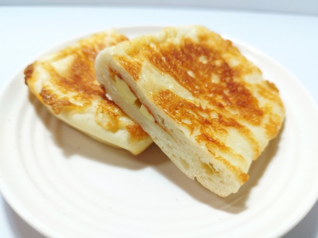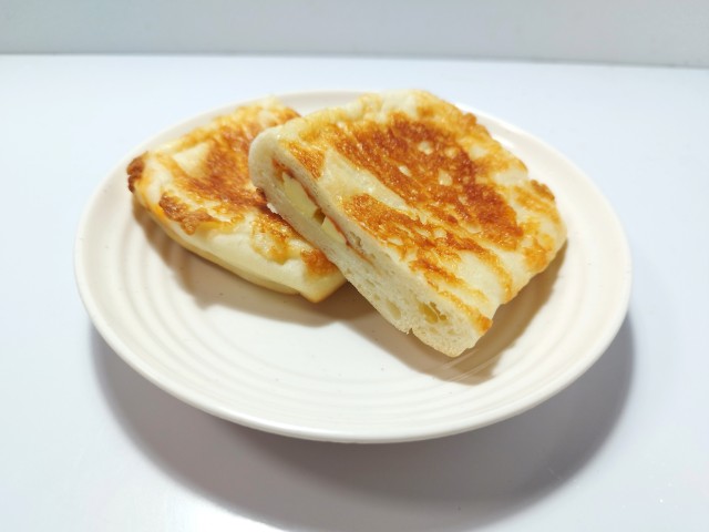 ボロネーゼフィリングとチーズフィリングを使ったパニーニです。以前にもっちりとしたパニーニ ハムチーズ(2025年10月21日発売)ともっちりとしたパニーニ てりやきチキンたまご(2025年10月21日発売)がありましたが、今回はミート&チーズになっています。そんなもっちりとしたパニーニですが、生地はもちもちとした食感と小麦の風味で、ハマってしまう美味しさです。中にはボロネーゼフィリングとチーズフィリングが入っていて、ボロネーゼフィリングは肉の旨味とトマトのほのかな酸味、チーズフィリングはチーズの塩味となめらかな味わいがあって、相性抜群の組み合わせになっています。大きさは普通の惣菜パンくらいで、小腹が空いた時や主食にあと一品追加したい時にピッタリです。ぜひミート&チーズのもっちりとしたパニーニを食べてみてください。