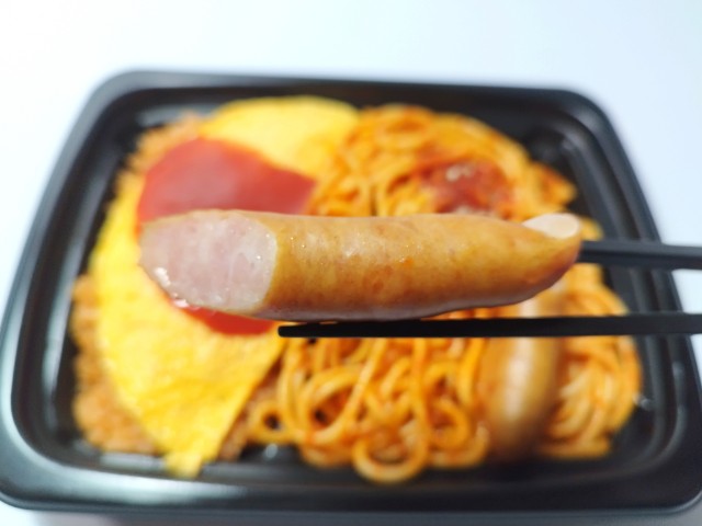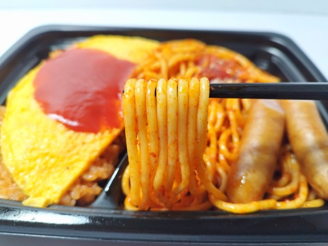 オムライスとナポリタンを同時に楽しめる商品です。以前の購入が2025年2月24日発売だったので、約2ヶ月近く経っていますが、価格は変わっていません。そんなよくばりセットメシですが、オムライスはたまごの甘味とケチャップライスの味わい、ナポリタンはケチャップのほのかな酸味とパスタのほどよい硬さで、安定の美味しさです。前回のトッピングはチキンカツでしたが、今回はあらびきウインナーがのっていて、パリっとした食感と肉の旨味、あふれる肉汁があって、オムライスにもナポリタンともよく合います。内容量は1食分にちょうどよく、お腹も満たされます。ぜひオムライス&ナポリタンのよくばりセットメシを食べてみてください。