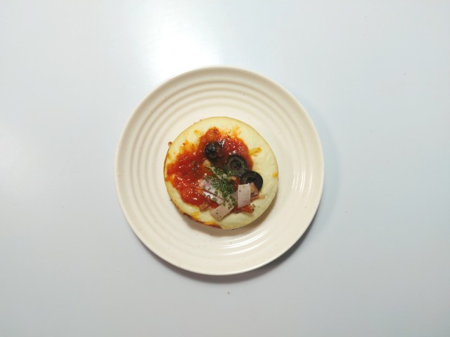 トマトソースとベーコン、オリーブ、パセリがトッピングされています。