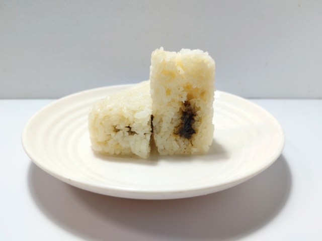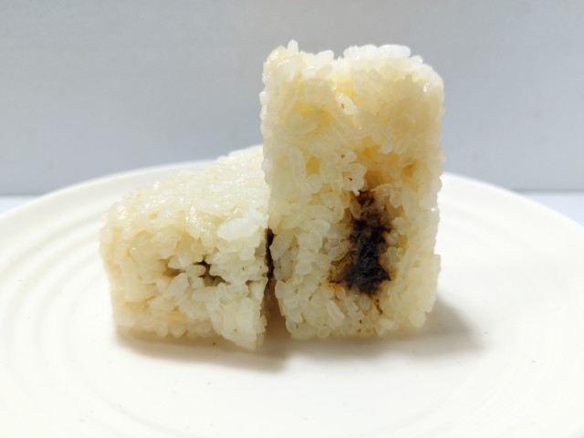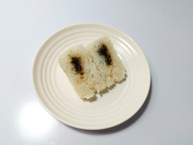 海苔の佃煮を使ったおむすびです。海苔の佃煮を使っている時点で美味しいイメージしかなく、見つけた瞬間に手に取ってしまいました。そんなおむすびですが、ご飯はだし飯になっていて、だしの風味とほのかな塩味があって、これだけでも美味しく食べ進められます。中具の海苔の佃煮は海苔の風味とだしの旨味、甘辛い味わいがあって、ご飯ともよく合います。海苔の佃煮はご飯のお供といわれているだけあって、ハズレのないおむすびになっていると思います。大きさは普通のおむすびサイズで、小腹が空いた時や主食にあと一品追加したい時にピッタリです。ぜひ海苔佃煮のだしむすびを食べてみてください。