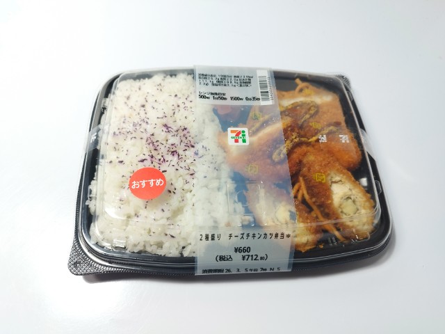 セブンイレブンの今週の新商品「2種盛りチーズチキンカツ弁当」を食べてみました。