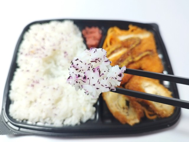 ささみチーズカツと、大葉を巻いたチーズチキンカツの2種類のチキンカツを楽しめる弁当です。マスタードで味にアクセントを持たせた仕立てです。