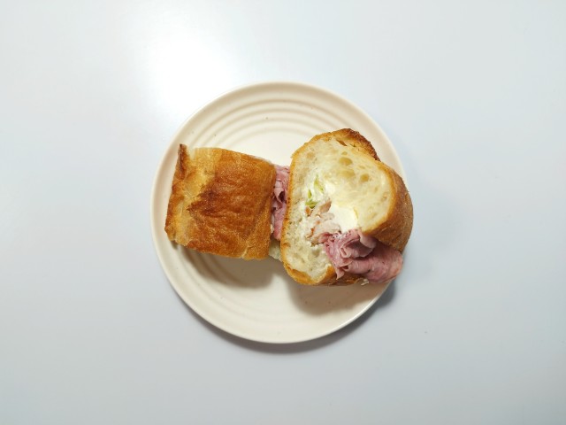スモークチキン&ソフトサラミの石窯パリジャンサンドを美味しくいただきますっ!!
