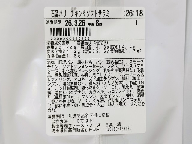 ファミリーマートの商品「【関東・東海・関西】石窯パリジャン スモークチキン&ソフトサラミ」を食べてみました。