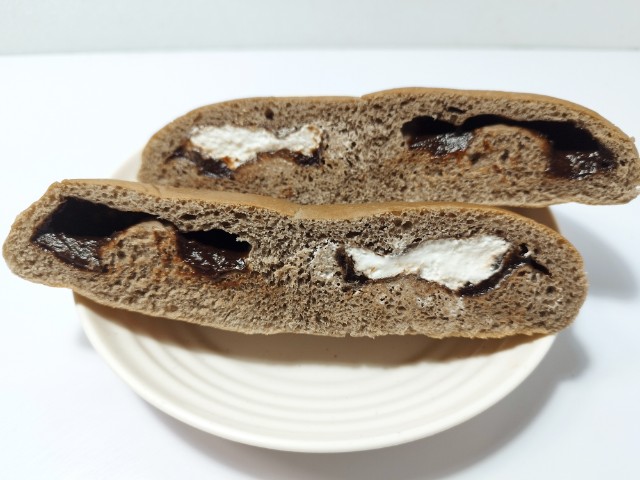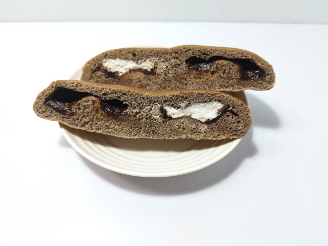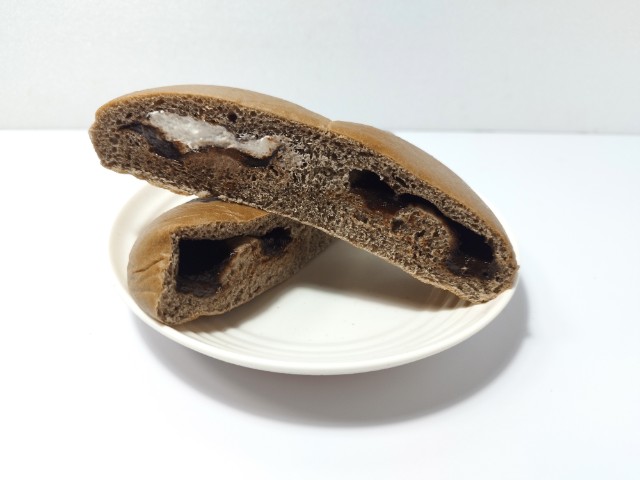 カカオ感じるチョコクリームを包餡した生地を横に2個並べ焼き上げた後、片方にホイップクリームを注入しました。2種類の味わいが楽しめます。