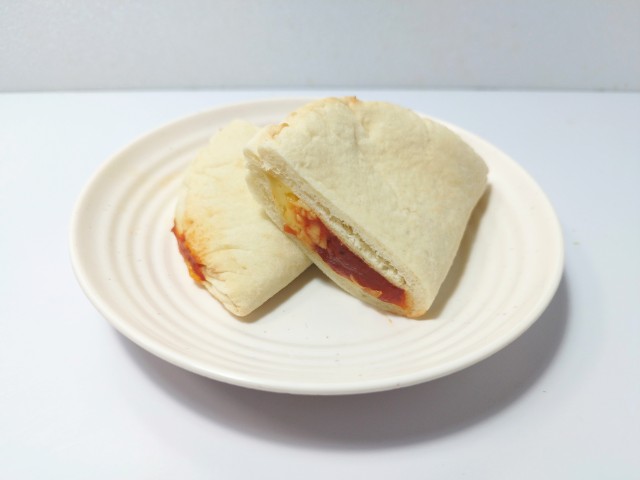 完熟トマトのソースモッツァレラチーズを使ったピザサンドです。チーズ20%増量の言葉に惹かれて買ってみました。そんなピザサンドですが、生地もちっとした食感歯切れの良さで、安定の美味しさです。中には完熟トマトのソースモッツァレラチーズが入っていて、完熟トマトのソーストマトの酸味濃厚な味わいモッツァレラチーズなめらかな食感ほどよい塩味があって、相性抜群の組み合わせになっています。また、今回はモッツァレラチーズ増量されている事もあって、さらに満足度も高いと思います。大きさは小腹を満たすにはちょうど良いサイズで、おやつ主食にあと一品追加したい時にもピッタリです。ぜひ増量された完熟トマトのマルゲリータピザサンドを食べてみて下さい。